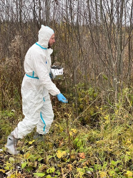 Ветеринарные специалисты Станции по борьбе с болезнями животных Лужского района проводят раскладку антирабической вакцины. Она предназначена для иммунизации диких плотоядных животных от бешенства.