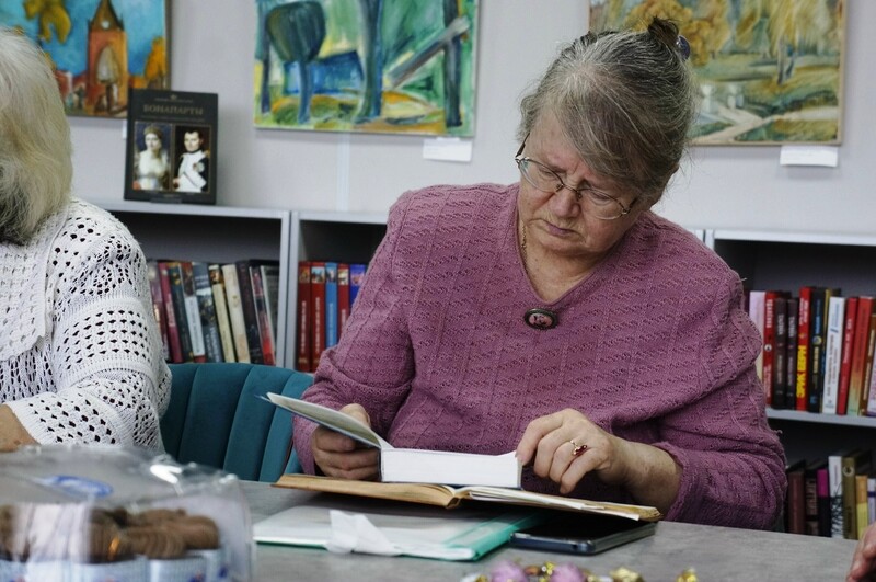 На заседании Клуба поздравили с юбилеем Ирину Попович. Ирина Леонидовна долгие годы работала журналисткой, сама пишет стихи, так что о литературе знает не понаслышке. Заседания Клуба любителей поэзии проходят каждый второй вторник месяца.