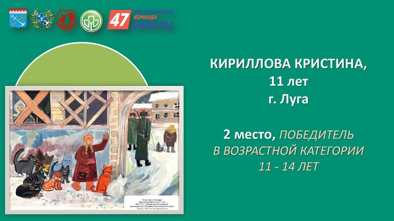 В старшей возрастной категории ученица школы № 6 Алиса Степанова отмечена за 2 место. Елизавета Уберская (ЛДХШ) получила специальный приз начальника Управления ветеринарии Ленинградской области Л.Н. Кротова.