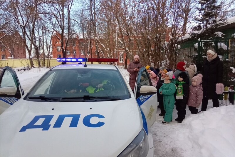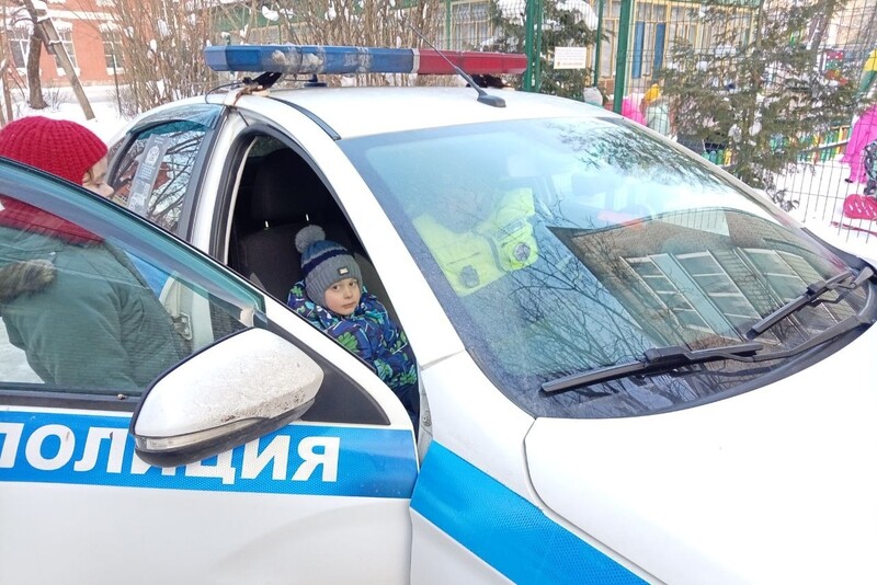 Сотрудники Госавтоинспекции познакомили воспитанников детского сада с устройством патрульного автомобиля. Ребята продемонстрировали свои знания правил дорожного движения, задавали инспекторам интересующие их вопросы и обсуждали с ними дорожные ситуации.