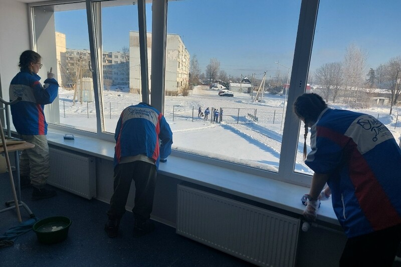 Утром 31 января ребята приступили к работе. Они расчищали от снега детские площадки, в Осьминской школе мыли классы, окна, полы и мебель, разобрали гримерку после капитального ремонта Дома Культуры. 4 февраля ребята пригласят жителей поселка на традиционный студенческий концерт.