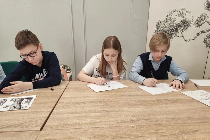 Вернисаж покорил юных лужан красотой и разнообразием. Ребята увидели работы мастеров и приняли участие в мастер-классе «Кора дерева». Школьники попробовали свои силы в создании картин.