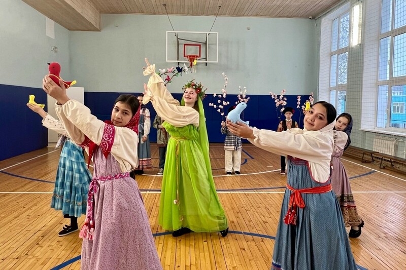 На праздник к ребятам пришла красавица Весна и подарила всем хорошее настроение. Праздник, наполненный народными песнями, танцами, закличками и весельем, получился светлым и радостным, благодаря учащимся пятых классов.