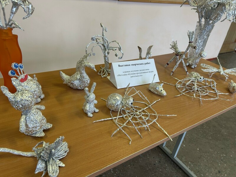 На мини-вернисаже представили изделия, выполненные из различных материалов в рамках дисциплины «Методика преподавания продуктивным видам деятельности». Студенты изучают предмет под руководством преподавателя Елены Геннадьевны Елышевой.